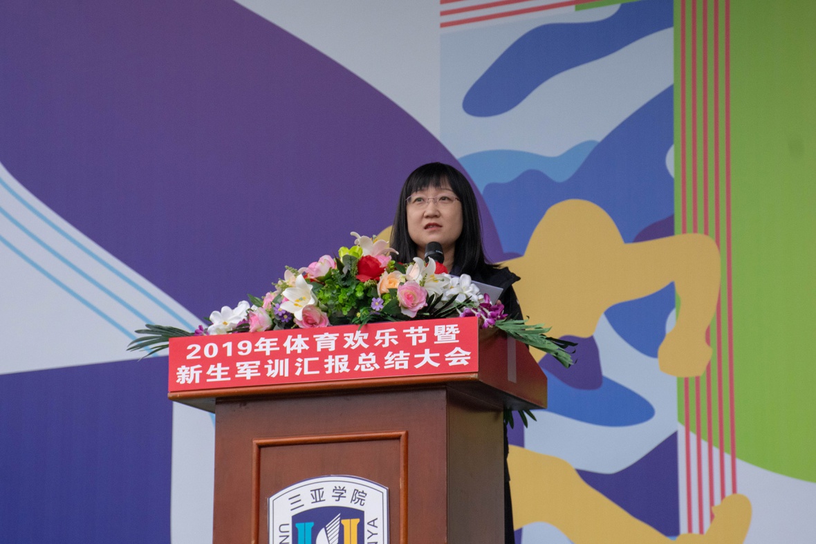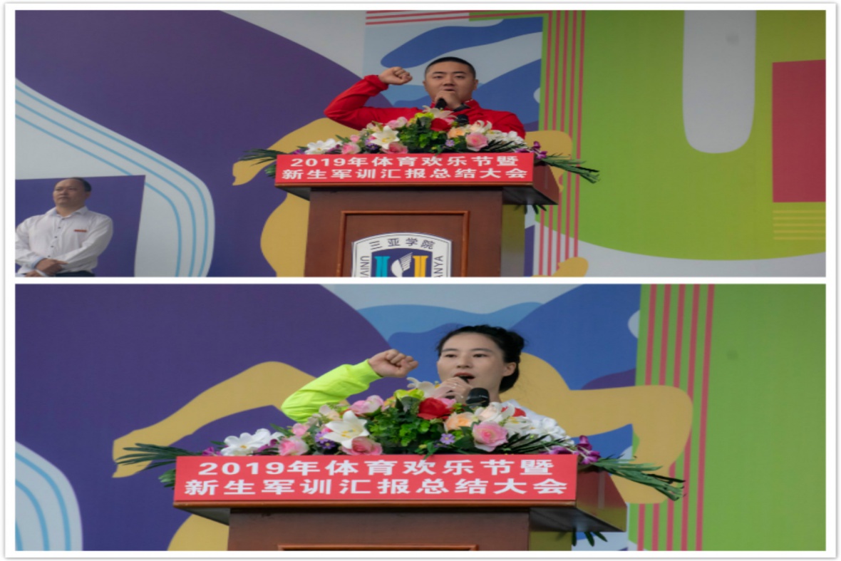 三亚学院校长助理、学务长、人事长高一兰上台致辞。她衷心感谢所有教官的艰苦付出,总结了同学们在军训期间的表现,并衷心祝贺全体师生能在体育欢乐节上尽情狂欢,赛出风采,用青春的乐章谱写辉煌岁月。裁判员代表胡兴黎宣誓,她表示坚决服从大会的指挥,严格遵守竞赛规则和裁判记录,尊重参赛运动员,文明裁判,严肃认真。运动员代表蔡雨航宣誓,尊重对手,团结协作,勇于拼搏,赛出水平。