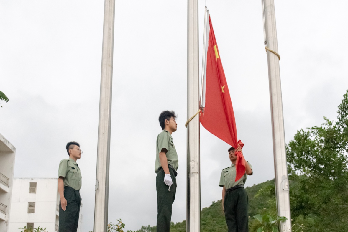 早晨微风习习,下着朦胧细雨。伴着庄严嘹亮的国歌,五星红旗冉冉升起,在场的全体师生怀着崇敬与喜悦的心情,凝视着迎风飘扬的五星红旗,心中无比自豪。