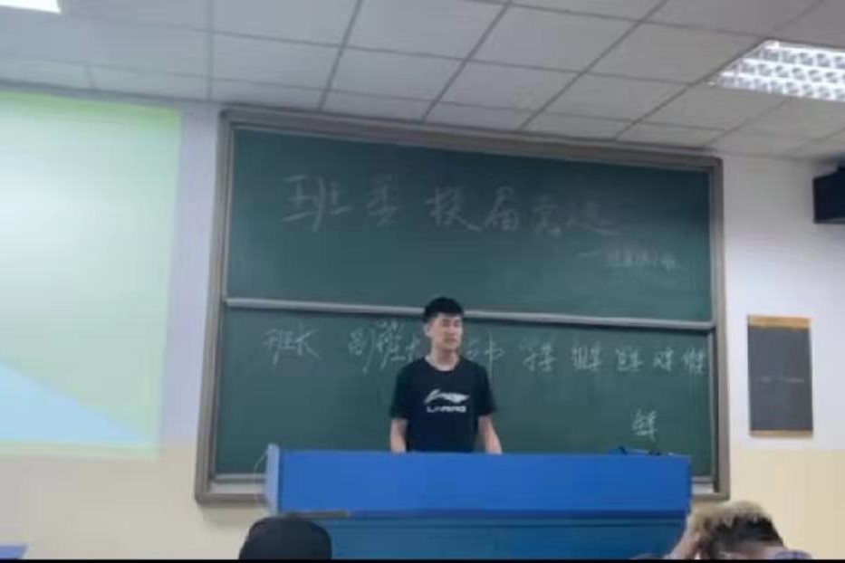 首先是老班委汇报工作,总结心得。第一个登上讲台的班委是团支书胡宸瑞同学,他协助班长组织了财院的“沧桑巨变,唱彩中华”合唱比赛,调动同学的积极性与凝聚力,成功取得了第一名的好成绩,为班级争光。他还负责收集与上交党员申请书,为同学们争取成为党员的名额。紧接着是生活委员高睿同学和章子颖同学,他们也协助班长参与了合唱比赛的组织工作。在10月1日的交流活动和篮球班赛中,这两位同学积极活跃气氛,组织同学们参加活动,督促队员训练,所有事都亲历亲为,为我们树立了一个吃苦耐劳,一心为班级奉献的榜样。然后是组织宣传委员朱琦琦同学,她负责思修课的志愿者活动工作,不仅要组织同学们积极参加志愿,在学校方面也在为大家争取更多的志愿者活动名额,确保每位学生都可以完成思修课的任务,在我们志愿者活动结束之后,朱琦琦同学都默默的收集整理志愿者活动登记表,细心的为每位同学修改表上错误,在职期间勤勤恳恳,任劳任怨,一直走在为班级奉献的最前线。副班长王智同学在工作热情高涨,努力的辅佐班长和其他班委工作。学习委员赵德星同学负责老师与学生交接的工作,在学习群里,及时,明确的把老师下达的命令通知给同学们,以确保同学们可以完成老师交代下来的学习任务。文体委员杨娴雅同学组织篮球比赛啦啦队并监督训练。还有负责素质拓展,体育欢乐节,体育狂欢夜等活动。