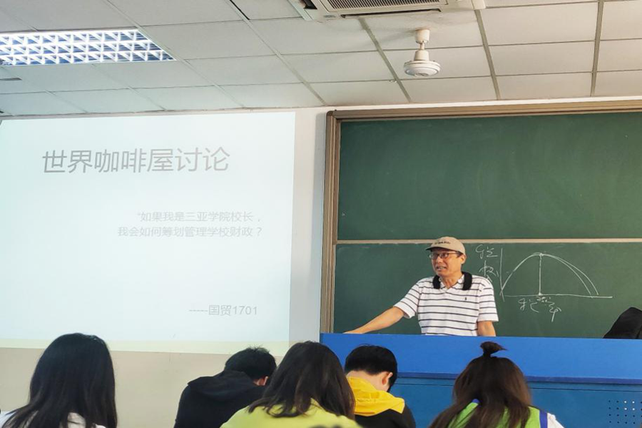 2019年12月25日上午第一二节课,在我院张光教授本学期为国贸1701班开设的《财政学》的最后一堂课上,近六十名同学以世界咖啡屋的方式,围绕着“如果我是三亚学院校长,我会如何筹划管理学校财政?”话题,开展了一场热烈有序的讨论。