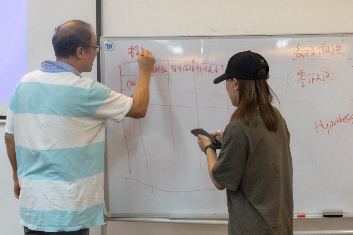 第二位是国贸1901班的周子艾同学。他把第二章分成四个部分,再分别深入解析,并将同学们的管理学成绩做成数据表格,张光院长以这个表格为例,为同学们展示了SPSS软件的简单使用方法和操作。张光院长在电脑上与大家一起逐步操作SPSS,虽然步骤复杂,但院长很有耐心地讲解着。