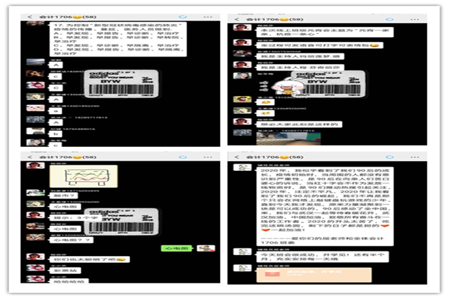 2020年2月8日是中华民族传统的元宵佳节,同时这个元宵节也注定不平凡。随着全国新型冠状病毒感染的肺炎疫情蔓延,同学们及时准确掌握疫情防范知识变得格外重要。为了增添节日气氛宣传疫情防范知识,会计1706班于元宵佳节下午17时在班级微信群举行“元宵一家亲,抗疫一条心”的主题班会,主题班会由班长程丽莎和组织委员张璐主持全体同学参加。