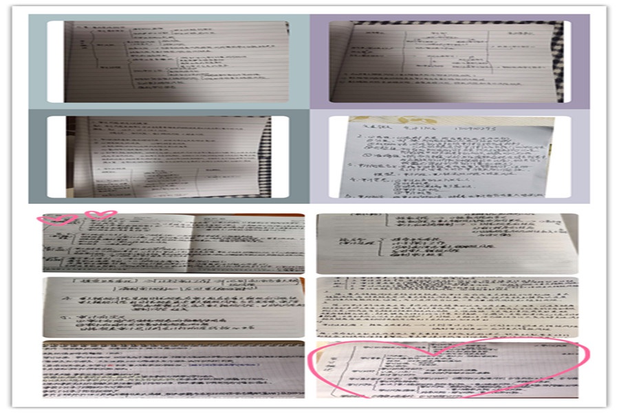 第一章主观题测试时间共计60分钟,较难的两道题目需要学生自己总结,上传的手写版照片可以看出学生在家答题非常之认真,学生的学习热情并未被疫情磨灭,从他们认真书写的答案中看出,学生格外珍惜学习的时光。作为一名教育工作者,很开心、很欣慰。