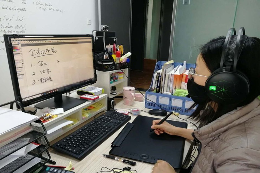 盛宝金科学院的吴韶颖老师,为了使讲解更为清晰,让学生较好地理解内容,掌握方法,提前购买了可以用于在各种格式文件上进行演示的网课教学手写板,效果堪比课堂现场板书,某种程度上讲甚至更好。