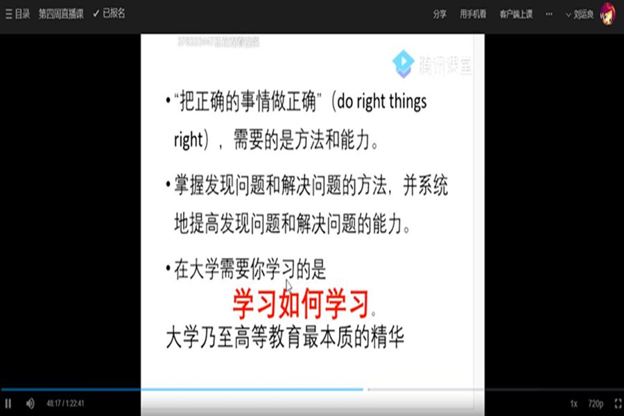 但以上的教学还存在无法交流的情况,刘老师也会根据课程学习情况以及反馈情况,在腾讯课堂开设直播课强调一些注意到问题和Office hour时间在课程群里解答疑问。