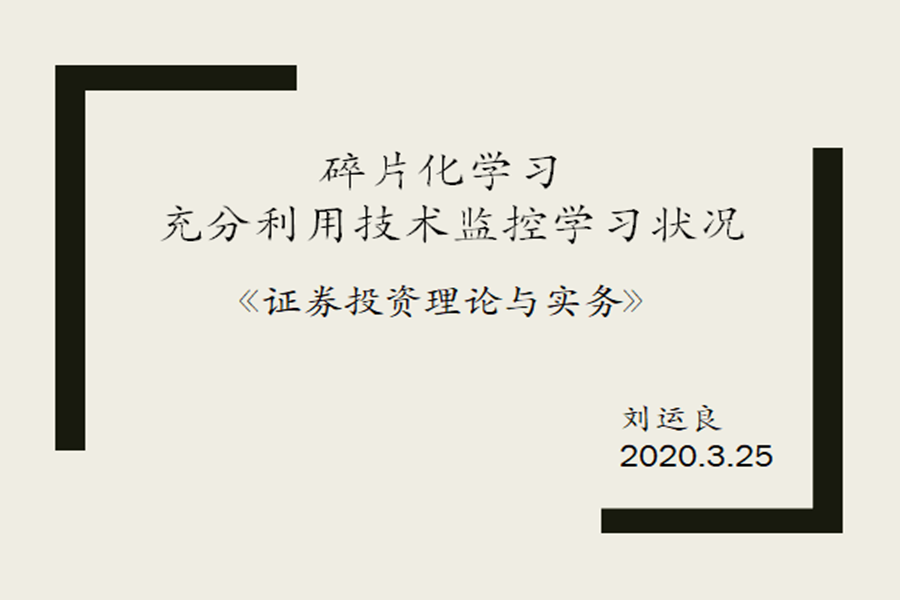 本学期《证券投资理论与实务》线上课程采用学习通+腾讯课堂形式进行,学习通主要提供线上学习,腾讯课堂提供直播交流。此外,本门课程偏向实践性,故在课程讲解过程中重点强调应用,通过应用反哺理论知识学习。
