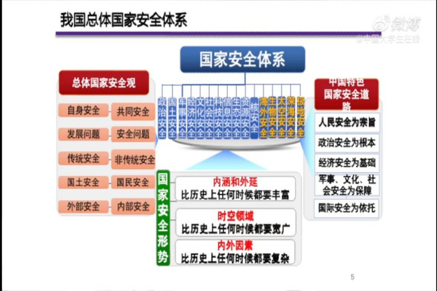 今年全民国家安全教育日的主题是“坚持总体国家安全观,统筹传统安全和非传统安全,为决胜全面建成小康社会提供坚强保障。”也许有人会说,像我们这样的普通人,国家安全和我们有什么关系呢?也许有人会觉得,国家安全距离日常生活很遥远。实际上,“国家安全”早已不限于“保卫国家不受侵略”的意思,而拓展到了经济、社会、生态环境、网络空间等各个领域,它其实与我们每个人的生活都息息相关。我们每次说话、拍照片、甚至在网上查找资料……都有可能影响到国家安全。通过这次公开课,同学们对什么是国家安全?破坏国家的行为有哪些?有了更深刻的了解。有同学表示:“在以后的生活中,会注意自己的一言一行,在微信朋友圈晒照片时,要注意照片中的背景,不能在军事基地、军用港口等地未经允许拍摄;上网时及时更新杀毒软件,加强对病毒的防范,不把一些涉密信息随意发到互联网上;要保持大脑清晰,不能被不怀好意的人挑唆,在社交平台发布不该发的言论和照片,为国家安全出一份绵薄之力。”
