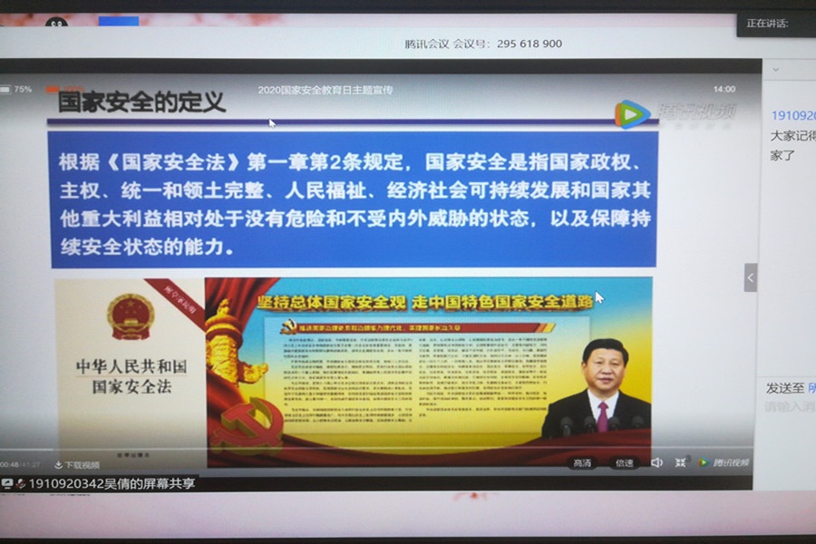今年是第五个全民国家安全教育日,下午14:00在班长的组织下,会计1903班全体同学在腾讯会议同千万学生共同观看国家安全教育课,并围绕其主题展开充分的讨论。