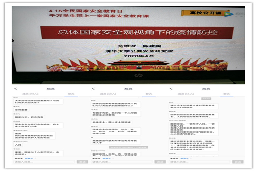 此次公开课由清华大学公共安全研究院的老师为同学们进行讲解。该公开课围绕“总体国家安全观”、“生物安全与公共卫生安全治理”、“面对疫情,大学生如何做”等方面层层剖析。通过课堂内容,我们还可以了解到国家安全包括“科技安全”、“资源安全”、“政治安全”等领域。让我们对国家安全的定义有了更具体的了解。维护国家安全是每个公民的义务,国家安全与我们的生活息息相关,让国家安全意识深入人心,并成为公众习惯。