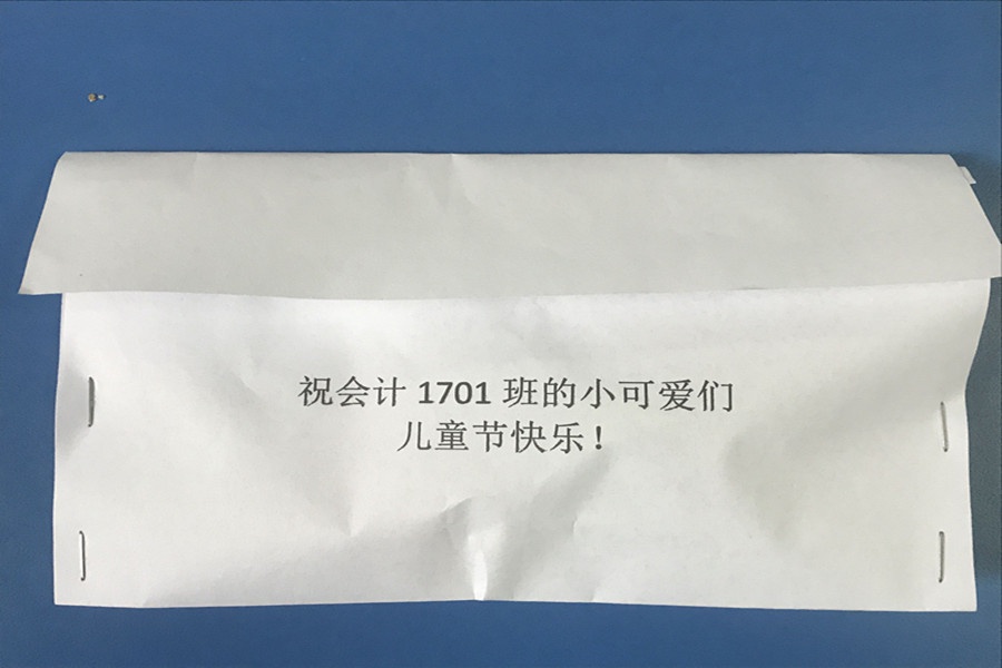在印象里儿童节应该是熊孩纸们最期盼的日子了,可以逛游乐园,可以放一天假,可以和小伙伴们到处玩耍……可是到了大学才发现,原来大学生们也喜欢过儿童节……(大学生是个节日就喜欢……)但是今年由于疫情,同学们被困在了校园中,本次儿童节只能在学校内度过。为了安慰同学们,也为了大家在一起度过的最后一个儿童节,班委们为所有返校的同学准备了礼物,并为未返校的同学送上了祝福,班委们准备的礼物在财经英语课的课间送给了大家。