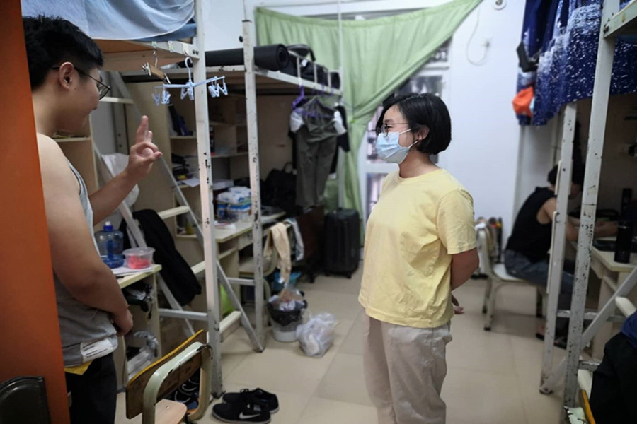 2019-2020学年春季学期即将结束,为了了解返校生生活情况和思想动态,保证同学们拥有良好的学习和生活环境,和同学们能够在期末考试周认真复习,于7月25日在北15和北17 公寓的会计学专业的学生进行宿舍走访。本次走访由祝弘扬老师和学生导助庞可卿、鲁云中和吴倩配合下,顺利进行。