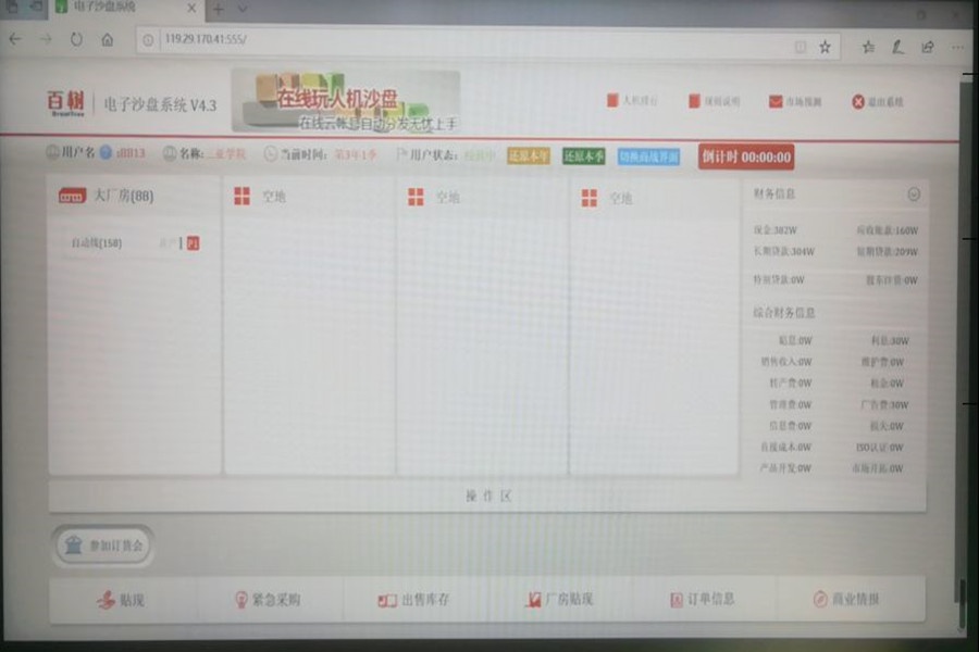 为了给学生身临其境的感受市场竞争激烈和残酷,将于8月3日开始为期两周的学习,在沙盘推演中,学生以校期间的生活学习为背景,通过沙盘和电子沙盘相结合的实训教学方式,使学生认识并体验到知识结构、资源、资金,以及团队合作能力。在系统和老师的指导线上线下形式,同学们分工合作,一起经营公司,在公司中发挥着自己的作用。老师以线上形式教我们如何经营,如何操作,如何实现收益,以线下形式分享操作技巧好的同学经验,值得我们去学习。实践和理论截然不同,我们现在学习理论知识不一定用到以后的工作当中,所以我们通过实践学习中获取经验。