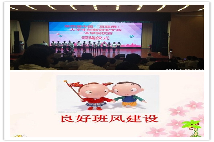 定期开展朋辈教育,让同学们了解到学长们奋斗的经历,来激励自己。8月27日召开班会,鼓励同学们积极参加各种有意义的比赛活动,经过一系列紧张的参赛活动,可以增强同学们对专业知识的理解和认识,从实践中求真知,5月20日第四届中国“互联网+”大学生创新创业大赛三亚学院校赛落下帷幕。在颁奖仪式现场宣读的获奖名单中,丁学用老师指导下的《“区块链”伴我行》项目小组荣获本次大赛优秀奖,而国贸1501班吴洲同学正是这个项目小组中的一员。