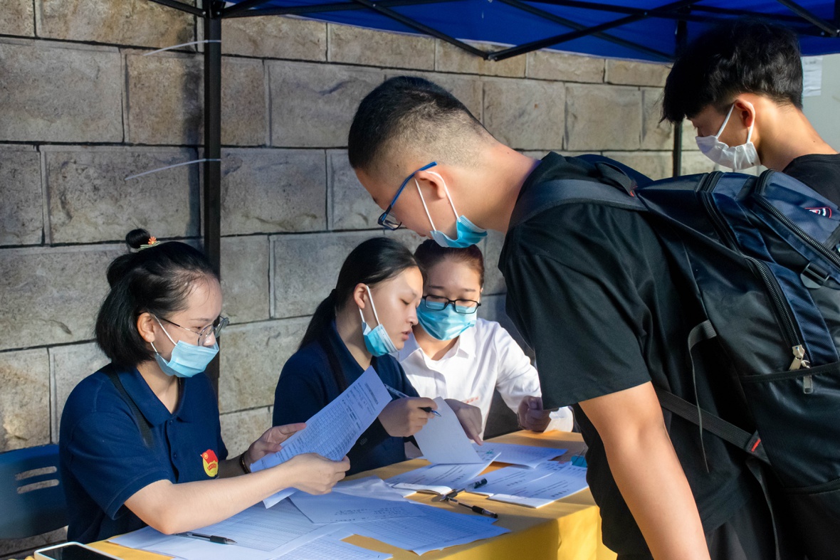 今年由于疫情的原因,新生都是独自前往学校报到,为了让新生尽快熟悉新环境,更快融入学校生活,迎新工作人员向新生们简单介绍了学校的建筑分布以及讲解有关宿舍的注意事项,良好的工作素质和态度使工作人员成为迎新工作的一道靓丽风景线。