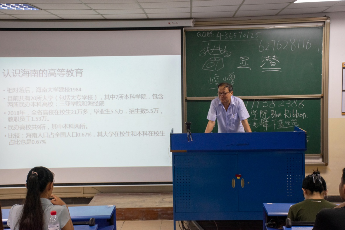 张光院长主要围绕认识海南、认识三亚、认识三亚学院和认识财经学院这四个方面来讲解。首先,张光院长向同学们介绍了自己,接着向同学们介绍了海南这个小岛的位置和气候等因素,并带领同学们认识三院和财经学院。最后,张光院长表示大学是我们决定人生的关键阶段,希望同学们能够抓住这段时间发奋读书,努力提升自己的能力,不断的去沉淀。