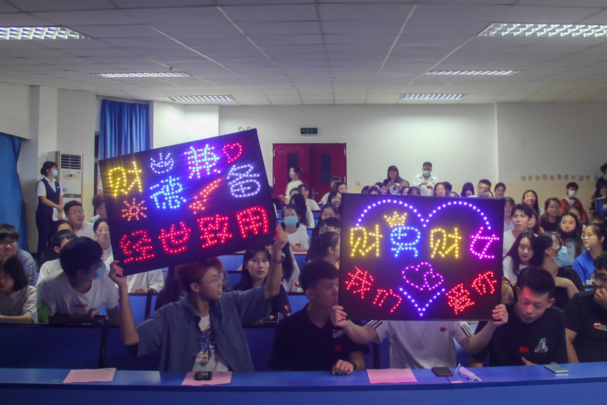 首先由财经学院的同学和盛宝金融科技商学院的同学分为两大阵营进行金融知识PK。两个学院的同学们都为此次金融知识比赛做了充分的准备,比分不分上下,你追我赶,谁也不甘示弱,双方的同学们都在为自己的学院加油欢呼着,每位积极抢答的同学们都获得了由交通银行三亚分行赠送的精美小礼品。在直播的最后,两个学院的同学们共同观看了有关校园贷危害的教育视频。