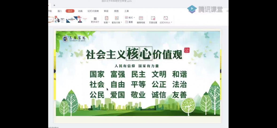 国庆长假即将到来,安全教育是学校工作的重中之重。9月26日召开了关于国庆期间安全教育主题的班会,这次会议主要分为三个部分:国庆及中秋假期安全教育,疫情常态化期间请销假制度解读,为创建全国文明城市。
