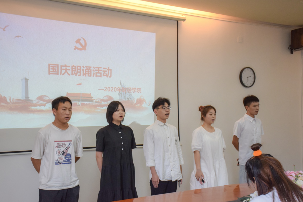 (财经团委 讯)2020年10月3日14:00,为庆祝中华人民共和国成立71周年,财经学院在社科楼四楼会议室举行了“新时代接班人传颂祖国富强”国庆诗歌朗诵活动。