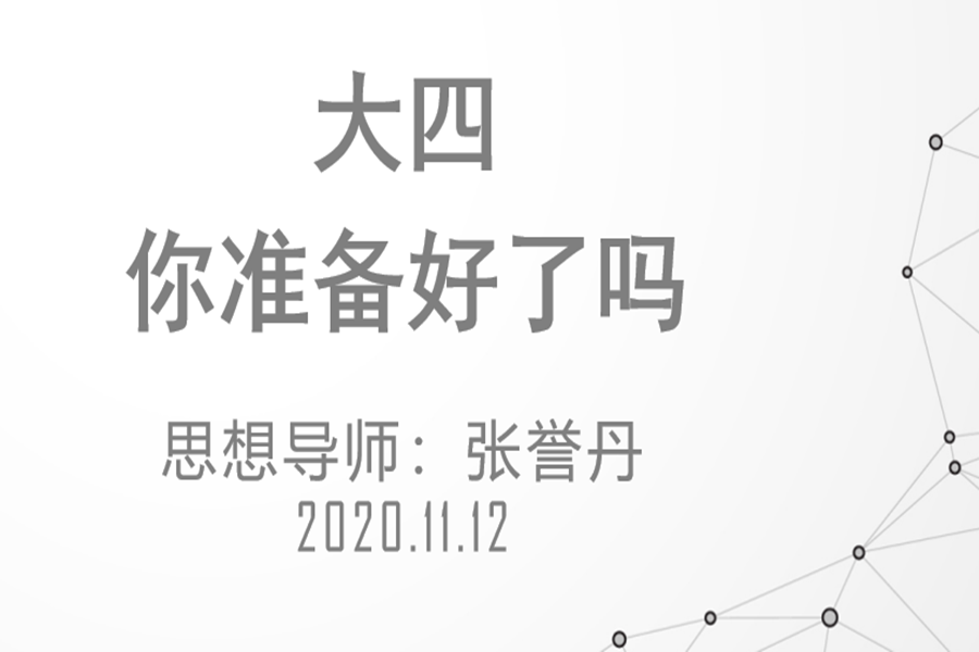 2020年11月12日下午,国贸1701、国贸1702、会计(专升本)1901班思想导师张誉丹就班级开学以来发生的各类情况进行教育总结,并开展“大四,你准备好了么”主题班会。