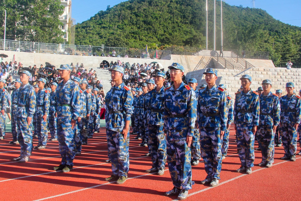 随着大会的进行,开始了此次大会必不可少的环节——升国旗奏唱国歌。在国歌响起的一刹那,全体师生起立,面向国旗。看着冉冉升起的五星红旗,想必心中所产生的不仅是殷殷的爱国之情,更是对未来三亚、未来祖国发展的期盼和信念。升旗仪式结束之后,开始进行标兵检阅仪式。各学院标兵队依次入场,整齐的步伐、铿锵的气势无不向我们展示了他们的自信与豪气。