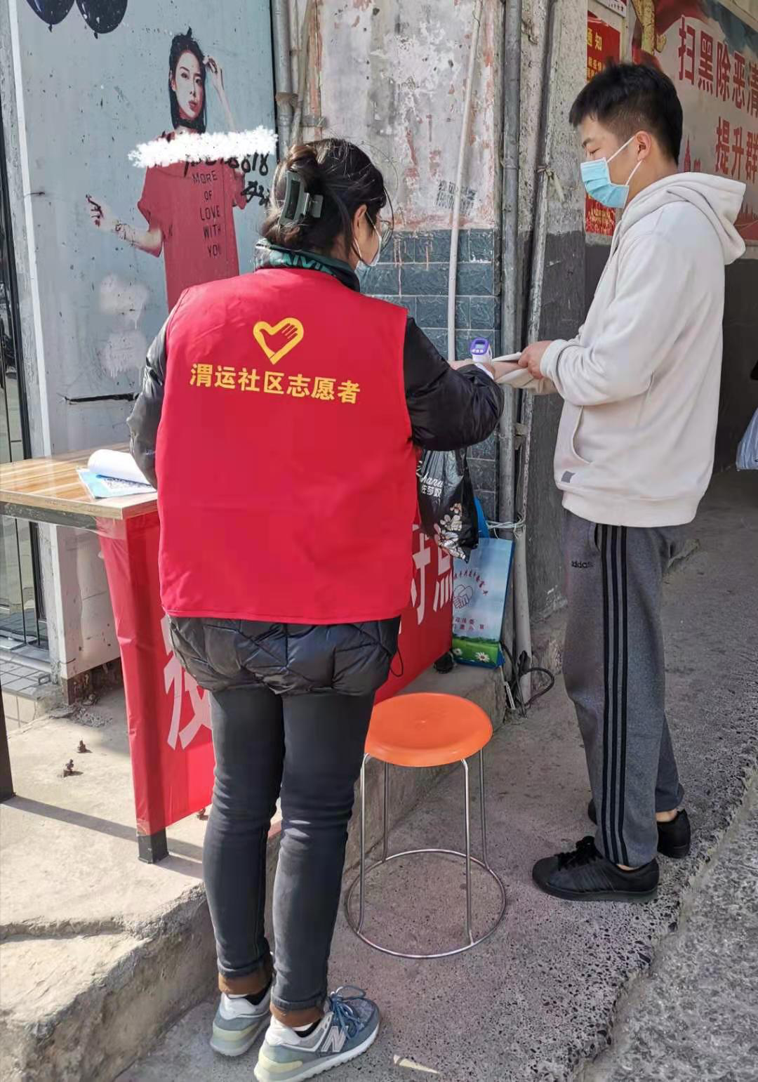 行青年之责,不驰于空想。面对疫情,青年人应当有青年人的担当与勇气。会计1904班的孟雨欣同学主动报名参加了陕西省渭南市富平县渭运社区的志愿者服务活动,成为社区志愿者中的一员。她在社区工作人员的安排下主要任务是参与老旧小区测温、扫码、登记等工作。