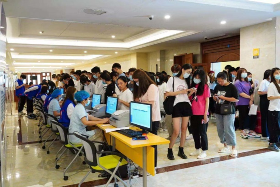 三亚学院财经学院师生们积极响应国家和学校的号召,积极主动报名及接种,携手共筑三亚学院疫情防控坚实战线。在志愿者的热情导引下,同学们整齐成队、依次进入。志愿者身影或守护在岗位上,或穿梭在排队的队伍中,为前来接种的同学提示接种流程步骤和注意事项。