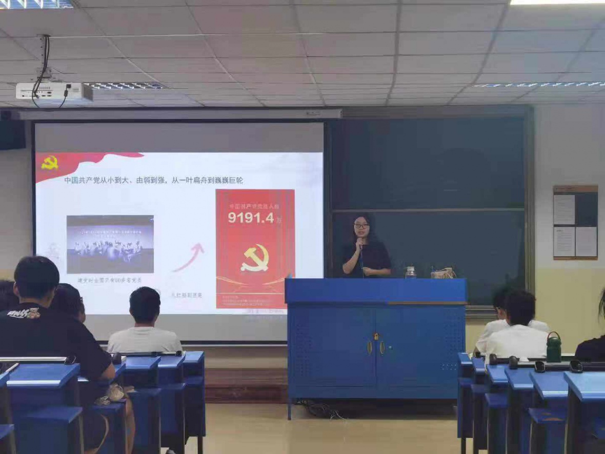 会议第二项,团支书肖亚君对中国共产党成立及发展过程作了简短介绍。中国共产党从小到大,由弱到强,从一叶扁舟承载着人民的重托,民族的希望,越过激流险滩,穿过惊涛骇浪成为领航中国行稳致远的巍巍巨轮。