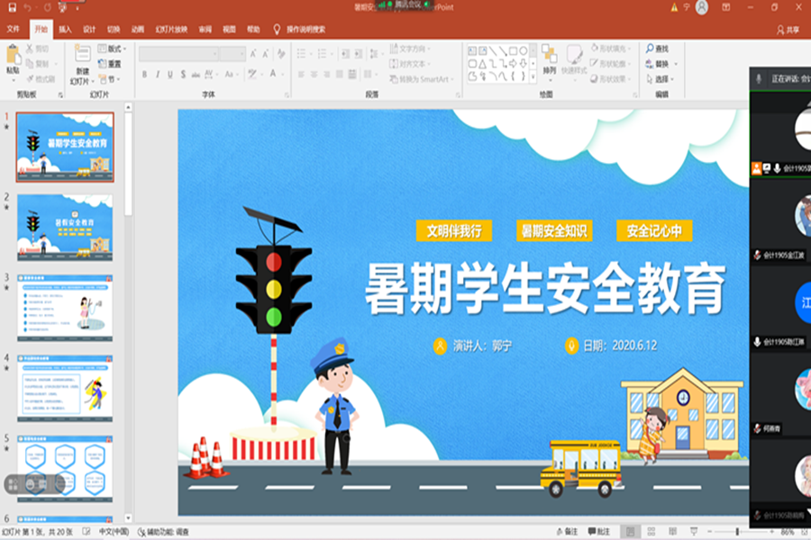 随着豪华假期,学生陆续离校,开启了快活自由的“暑假模式”。6月12日下午,会计1905班在班长郭宁同学的主持下,开展了以“邂逅假日,安全出行”为主题的暑期安全教育活动。