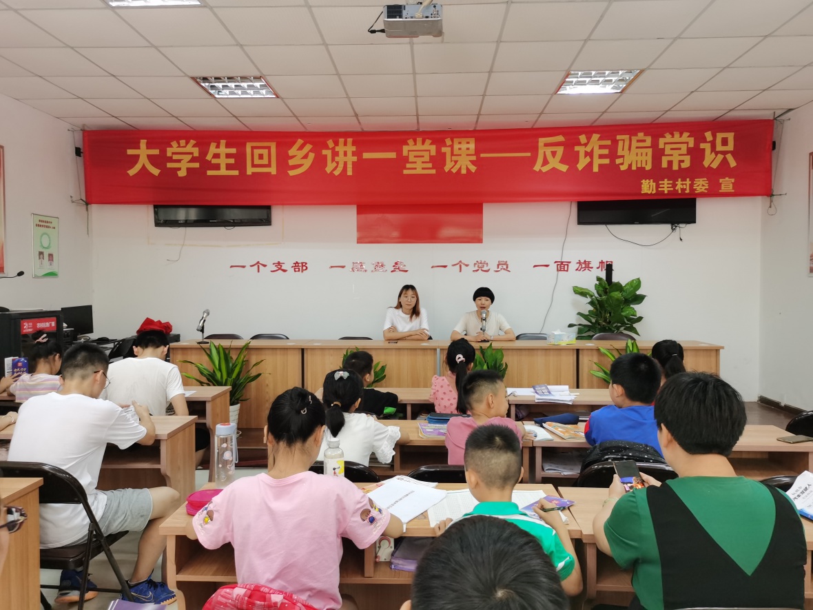 戴晓红同学此次大学生回乡讲一课的主题是“反诈骗常识”,用其所学知识为家乡的父老乡亲做一堂“反诈”宣讲课,戴晓红同学向村民和小朋友们详细介绍了现代电信网络诈骗的手段、方式,以及一些真实案例,让村民和小朋友们了解了电信网络诈骗的惯用语言和套路,让在场的村民和小朋友们对于诈骗的形式和常用手段有了充分的了解,提高了当地居民对于诈骗的认识,保护好个人账户信息。除此之外,戴晓红同学还提醒小朋友们要提高警惕,特别注意陌生人的“糖果”,不随意吃陌生人的东西。在宣讲课的最后,村民和小朋友们就自己目前存在的疑惑和问题向戴晓红同学进行请教和学习。戴晓红同学总结并告诫村民和小朋友们:“不管诈骗手段如何改变,一定要看清诈骗的本质!”提醒村民提高防范意识,遇到电话或者网络诈骗采取不理会或者举报的方式,切莫因贪小便宜的心理而遭受损失。