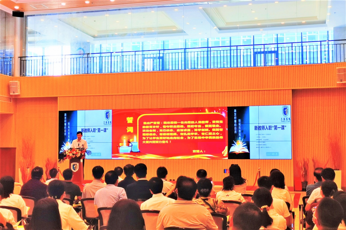 校长精彩讲话后,全体新进教师进行入职宣誓。