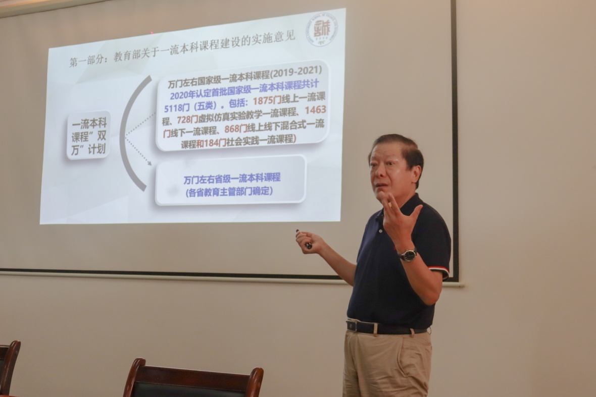 会上,张教授从三个部分作了内容讲解,第一部分:教育部关于一流本科课程建设的实施意见;第二部分:本科课程建设改革与探索;第三部分:如何进行“一流课程”建设。