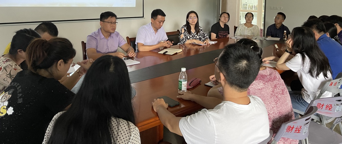 2021年4月21日下午四点,社科楼财经学院会议室,财经学院教工党支部召开学习党员会议,会议由傅萍书记主持,主要内容是交流谈论海南自由贸易港提出三年来,作为一个专业教师,各位教师如何从日常的教学活动中,培养服务海南自贸港发展的财会人才。