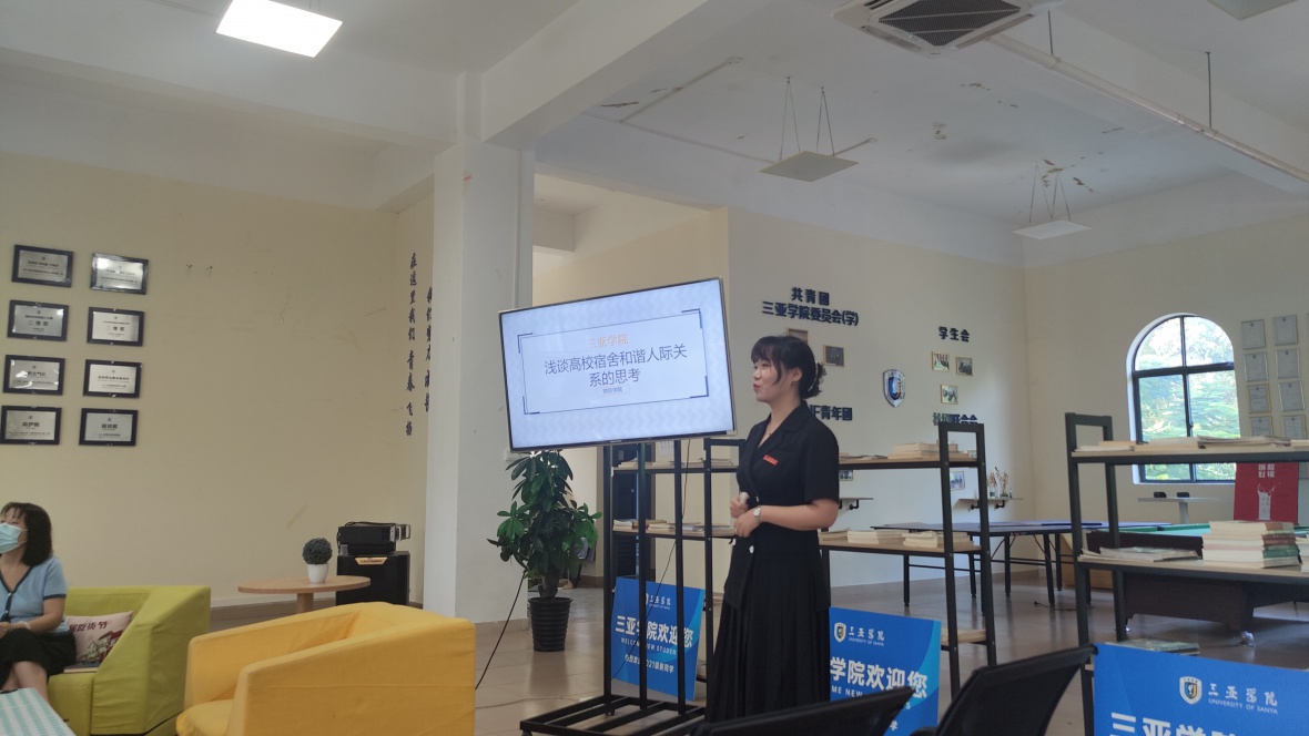 2021年11月5日下午在大学生活动中学财经学院王微老师进行关于《浅谈高校宿舍和谐人际关系的思考》的汇报。副校长高一兰、学生处处长赵晓乐以及各学院团委书记、思想导师参加本次会议。