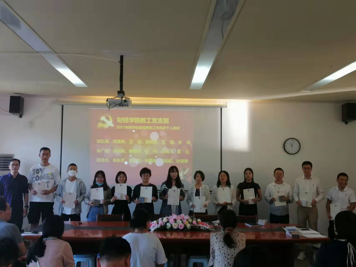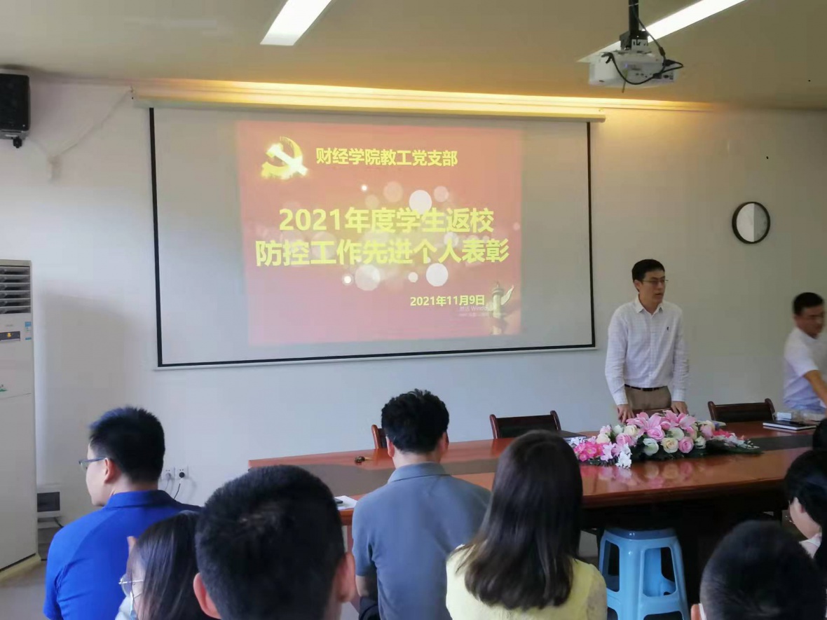 11月9日,财经学院教工党支部召开秋学期学生返校防控工作表彰大会,会议由党总支副书记朱广君主持。