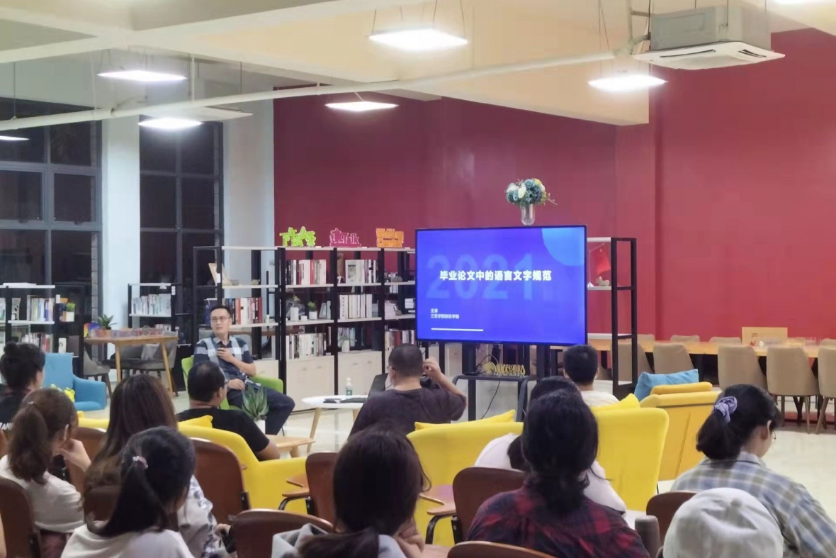 2021年11月18日晚,我院王涛老师受邀在三亚学院学生中心开展讲座。讲座主题为“毕业论文中的语言文字规范”,来自学校各学院的100多名学生参加了此次讲座。