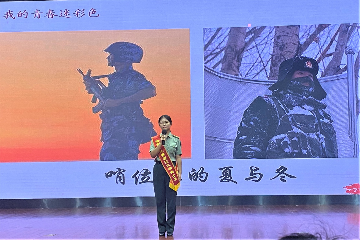 主持人说,军人是现代化建设的一股中坚力量,希望怀有军人梦想的同学们踊跃报名参军,绽放不一样的精彩人生。世界那么大,我想去看看。军营就是一个大世界,在军营你将成就你的梦想。作为当代社会的优秀大学生,我们应与祖国同呼吸、共命运、共成长、共发展,以坚定的信仰、踏实的行动,为中华民族伟大复兴贡献力量。