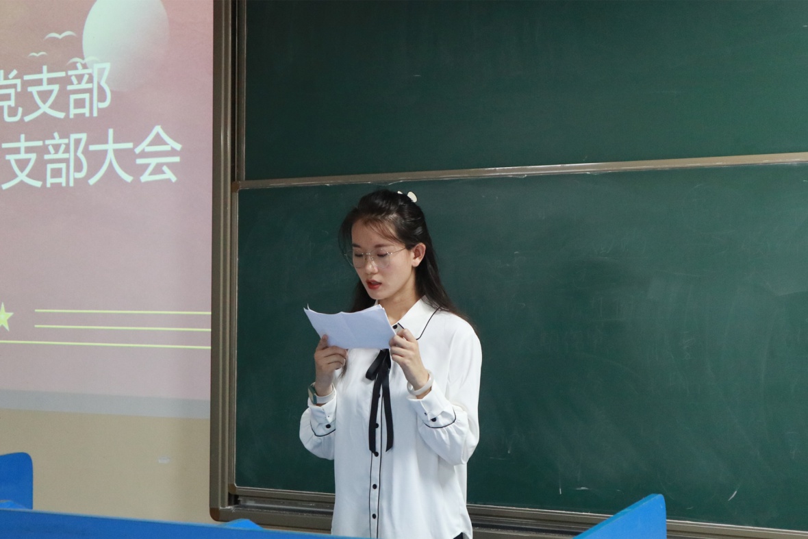 大会围绕51名拟发展预备党员并通过大会讨论决定其是否发展问题。会议严格按照规定程序召开,51 名拟发展预备党员逐一上台,同志们右举拳背诵入党誓词,表情认真庄严,对自己在大学期间的学习、思想、生活上等方面进行陈述,表达了对中国共产党的热爱以及成为预备党员的渴望,加上其自身优秀的品质,得到了在场老师和同学们掌声。之后由其介绍人做出评价,介绍发展期间的思想、学习、生活上的优缺点,肯定成绩和良好思想表现的同时也指出了一些不足之处,并表达了建议其转为正式党员,最后正式党员对各个预备党员进行投票表决。会议结束之际,老师作出最后的陈述,向预备党员说明了提交上来的材料问题,并希望在今后的工作中要有认真仔细的态度。