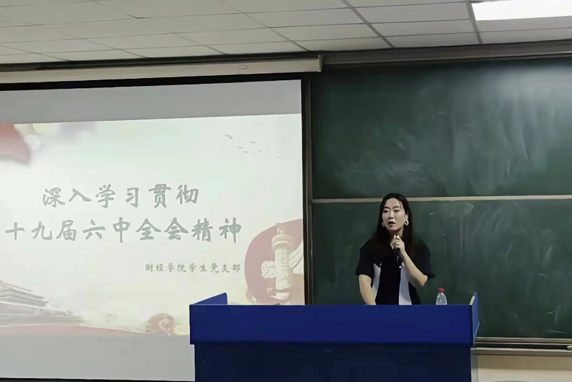 为深入学习宣传党的十九届六中全会精神,12月1日晚6点,在书新五号楼5东307教室,财经学院召开深入学习贯彻十九届六中全会精神会议,财经学院党总支副书记朱广君,学生支部书记祝弘扬、组织委员王微、宣传委员邓倩妮以及财经学院全体党员参加本次会议。会议由财经学院学生支部组织委员王微老师主持。