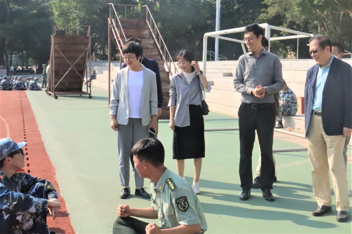 领导们询问了解新生军训工作情况,对坚守在一线的军训教官表示感谢,对受训新生不畏艰苦的良好精神面貌给予高度赞扬。勉励同学们鼓足勇气、克服困难、经受磨练,在军训中提升自身综合素质,圆满完成训练任务。