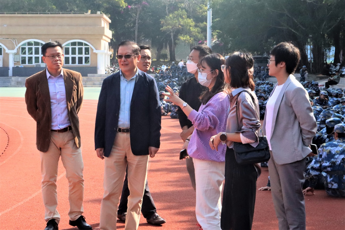 (新闻中心 讯)12月13日上午,财经学院领导班子、团委副书及新生思想导师老师,深入学院军训现场,一一走访学院所有新生方阵,并亲切慰问了军训现场的教官及同学。