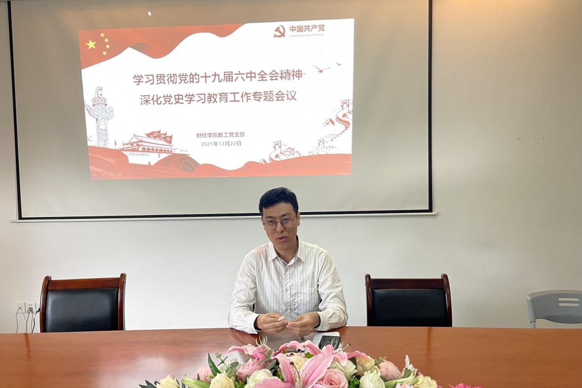 为深入学习贯彻党的十九届六中全会精神,进一步巩固我院教师党员党史学习教育工作成果,12月22日下午,我院党总支副书记朱广君组织全体教师党员集中学习党的十九届六中全会精神。