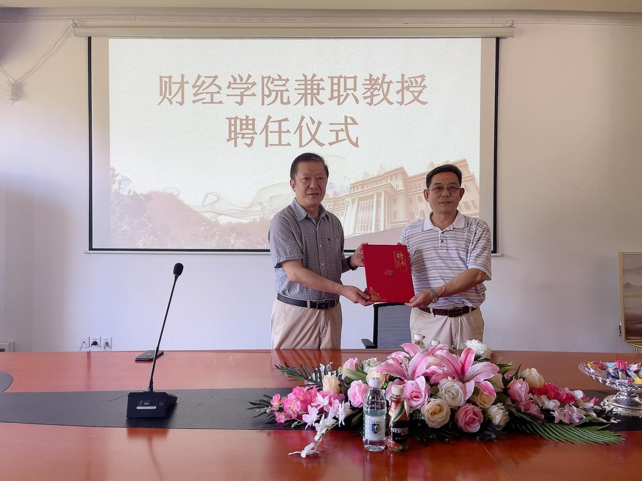 2022年11月5日,原山东省财政厅副厅长、二级巡视员、教授级高级会计师王镇修一行来财经学院进行访问交流,院长张涛教授对王厅长的到来表示欢迎,并为王镇修先生颁发兼职教授聘书
