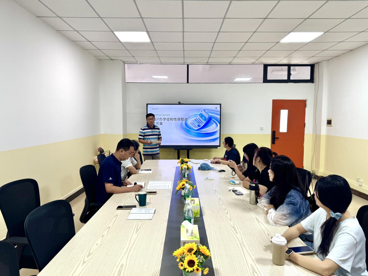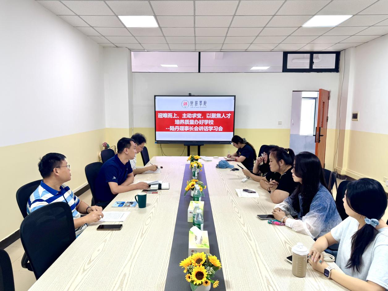 9月1日上午,财经学院自发响应环境变化,在书新三号楼409会议室组织召开专题学习会,开展自我提升学习,传达近期学校中层干部会议、院长会议核心精神,并围绕《三亚学院办学结构性调整改革总体方案》(以下简称《改革方案》)开展深度沟通交流。学院党总支副书记曹瑞吉主持会议并领学,院长助理王欣解读《改革方案》,系主任和全体行政人员参会学习。