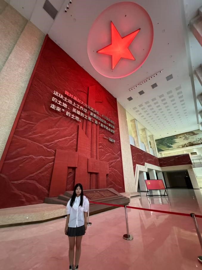 暑假伊始,会计(ACCA)2301班的汪心仪便踏上红色纪念馆探寻之旅,“我对这片土地充满深情”,踏入场馆时,这句话让她与历史瞬间共鸣。为让参观更具深度,她提前查阅海量党史资料,革命先辈的故事早已在心中扎根。参观过程中,面对同行伙伴对展品的好奇,她主动轻声分享:从先辈在艰苦环境中的英勇抗争,到这片土地成为新中国诞生的基石,每一句讲解都饱含对历史的敬重与对先辈的崇敬。漫步馆内,她在锈迹斑斑的武器、破旧补丁的衣物、先辈字迹前驻足凝视,这些珍贵文物与历史影像带她穿越烽火岁月,让她深刻触摸到先辈们的理想信念与家国担当。红色精神浸润下,她立下誓言:将家国热忱化为前行动力,在青春赛道奋力奔跑,让红色基因在新时代绽放更耀眼光彩,以实际行动传承先辈精神。