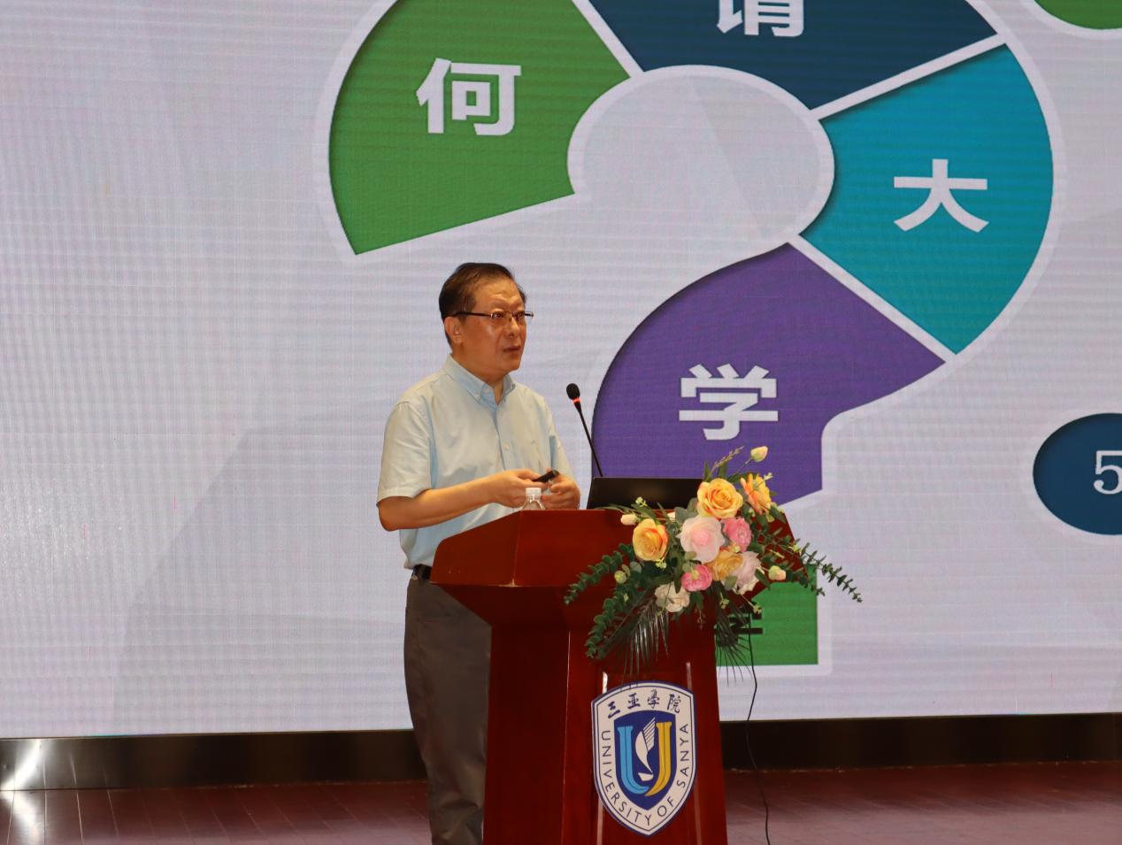 校长沈建勇教授以真挚情感与深刻见解,为全体新生点亮成长之路,围绕时代使命与学校人才培养规划,为全体新生讲授开学第一课。沈建勇校长首先代表学校对新生的到来表示热烈欢迎,他亲切地将新生们纳入三亚学院“USY大家庭”,让初入校园的学子们感受到浓浓的归属感。结合“强国有我”的时代主题,沈建勇校长向新生们发出殷切号召,鼓励大家在大学时光里深耕知识、锤炼本领,以智慧为笔、以创新为墨,筑牢个人成长与国家发展紧密相连的根基,未来主动肩负起为国家建设发展贡献力量的时代责任,在强国征程中书写青春华章。