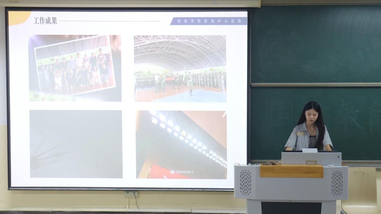会议伊始,由团委(学)林宇迪、马守明、郭研龙三位同学介绍了团委(学)主要工作内容、工作职能以及纳新要求等方面,并对新生的到来表示欢迎;随后,学生会张博涵、王智涛两位同学介绍了学生会的组成机制、各部门负责人及部门职能,欢迎擅长策划、沟通能力强的新生共同打造多彩校园生活;接下来,新闻中心杨佳霖、胡涵月、陈淇三位同学介绍了新闻中心的组织架构及特色活动,通过文图展示和视频展播等方式全面介绍了新闻中心各个部门,引发新生的浓厚兴趣。