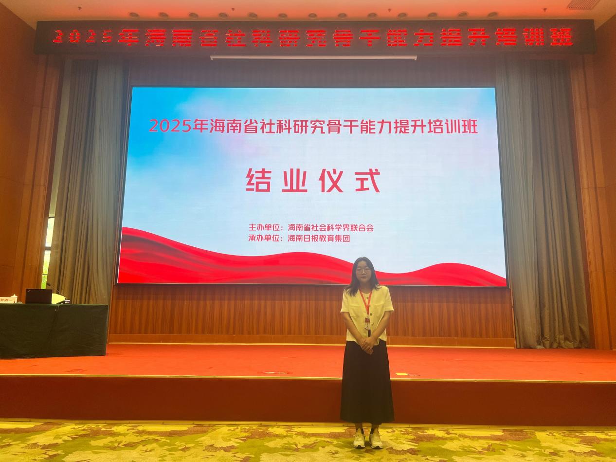 9月26日-28日,2025年海南省社科研究骨干能力提升培训班在海南澄迈顺利举办。本次培训由海南省社科联主办、海南日报教育集团承办,为期3天,汇聚了80余名省内高校、科研院所的科研管理工作负责人,以及省社科研究基地、哲学社会科学重点实验室、重点智库的骨干人员,我院教师樊杰博士代表海南省丝路商业文明研究基地受邀参训。