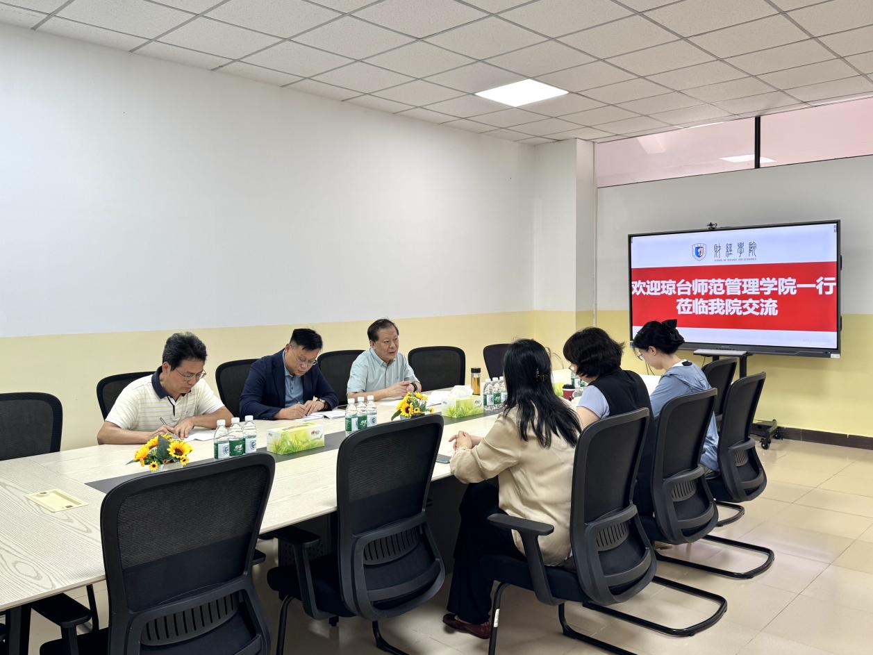 座谈伊始,张涛院长对李婉琼副院长一行的到来表示热烈欢迎,并详细介绍了财经学院的发展历程、学科布局、人才培养特色及近年来在教学科研、产教融合等方面取得的成果。他强调,学院始终以“培养应用型财经人才”为核心,不断探索教学改革与学科创新路径,希望通过此次交流,与琼台师范学院搭建常态化合作桥梁,实现资源共享、优势互补。