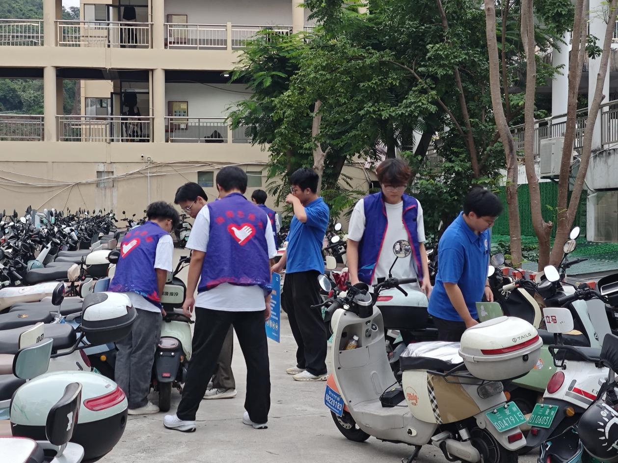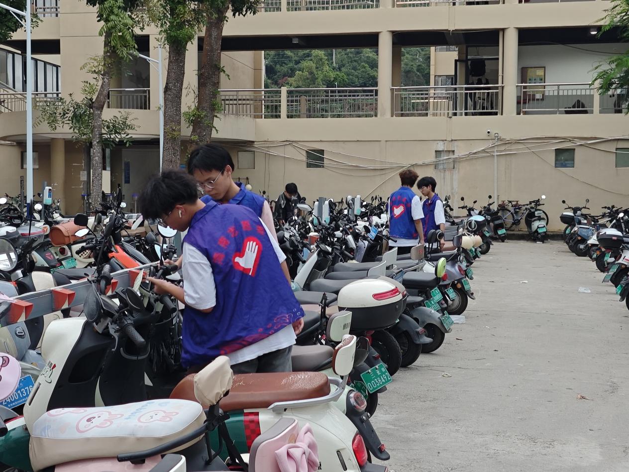 活动当天,志愿者们身着统一志愿服装,分成多个小组,分别前往校园各重点区域开展整治工作。在整治过程中,志愿者们秉持“劝导为主、服务为辅”的原则,对乱停乱放的电动车进行有序规整,将占用消防通道、人行横道、绿化带及教学楼出入口的电动车移至指定停放区域,并摆放整齐。对于现场发现的未规范停放电动车的师生,志愿者们耐心上前讲解文明停放的重要性,引导其自觉将电动车停放到指定位置。同时,志愿者们还主动帮助有需要的师生推车、挪车,用热情周到的服务赢得了师生们的一致好评。