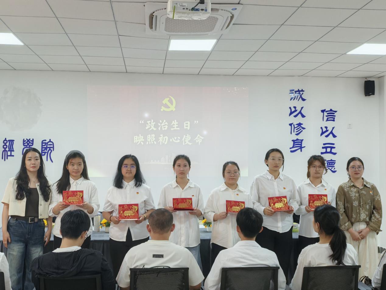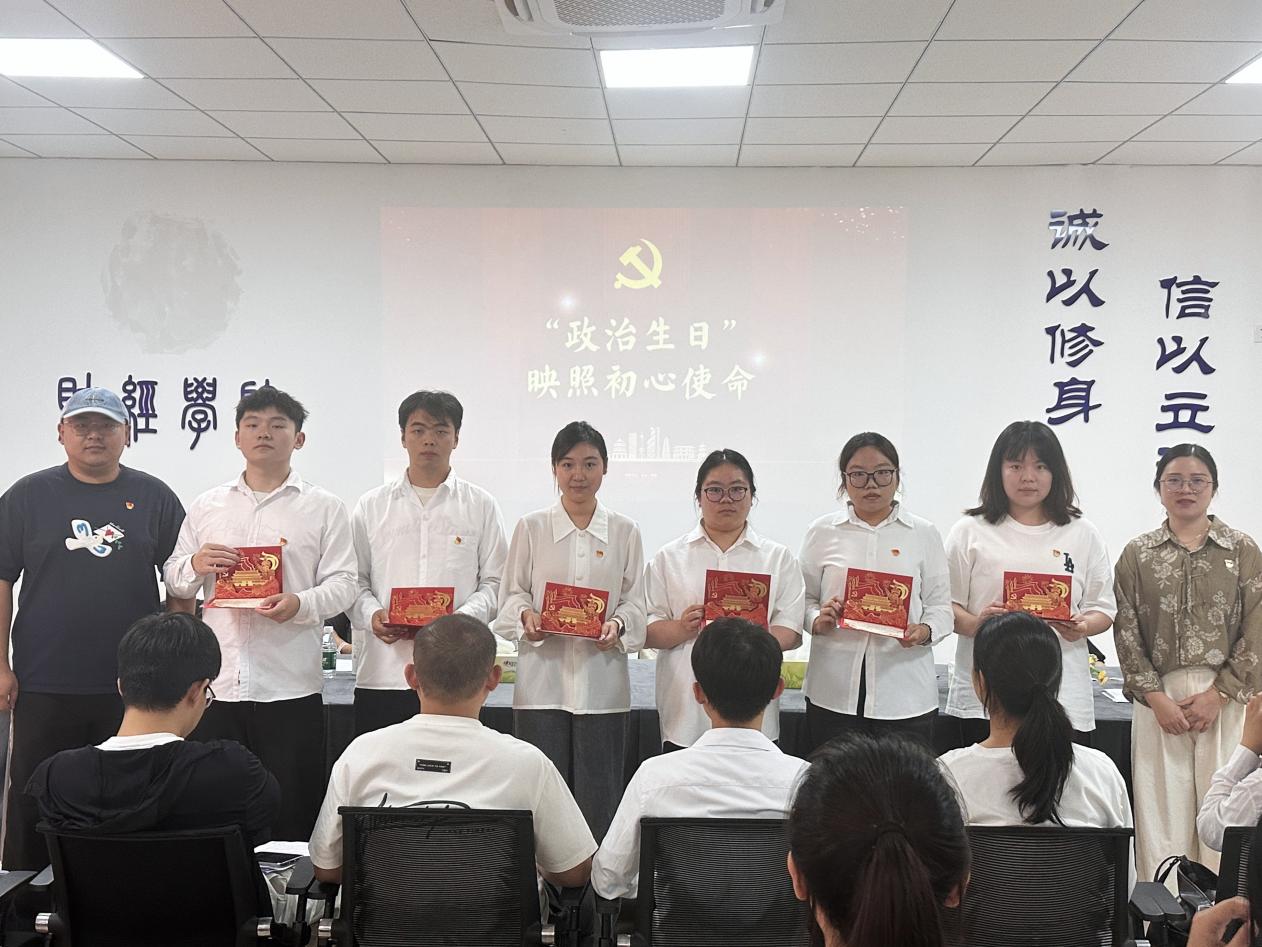 根据投票表决与现场评议,大会决定陶思蕊等12名同志转为中共正式党员,支部委员为以上同志颁发“政治生日”贺卡,全体党员重温入党誓词。